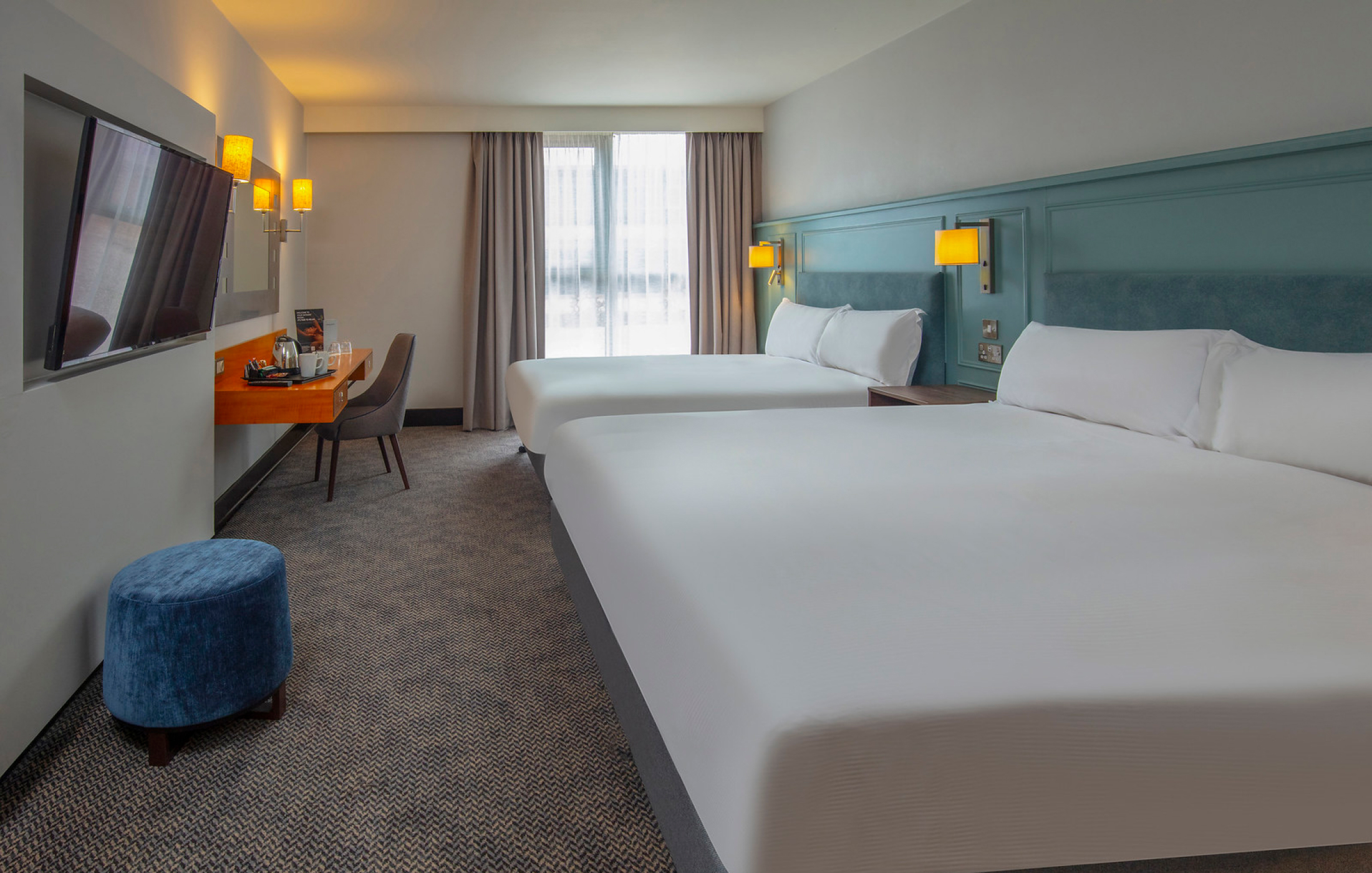 If you want something more from your stay at Crewe Hall, why not upgrade to a Deluxe King room? Like our Classic options, these rooms are located in the modern wing of our hotel but come with a larger bathroom that includes a shower and bathtub so you can enjoy a long relaxing soak after a busy day out. Our Deluxe King rooms are complete with air-conditioning and all the hotel essentials, and come with complimentary bottled water to start your stay the right way.