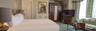 Timelessly traditional with subtle period features, our spacious Feature and Four Poster Rooms make for a charming hotel experience. Feel the nostalgia as you wander our historic wing and find your character-filled bedroom, ready and waiting to welcome you. When it’s time for bed, take a load off on the ultra-plush double or four-poster, dressed in soft linens and complete with fluffy pillows for an indulgent night’s sleep.