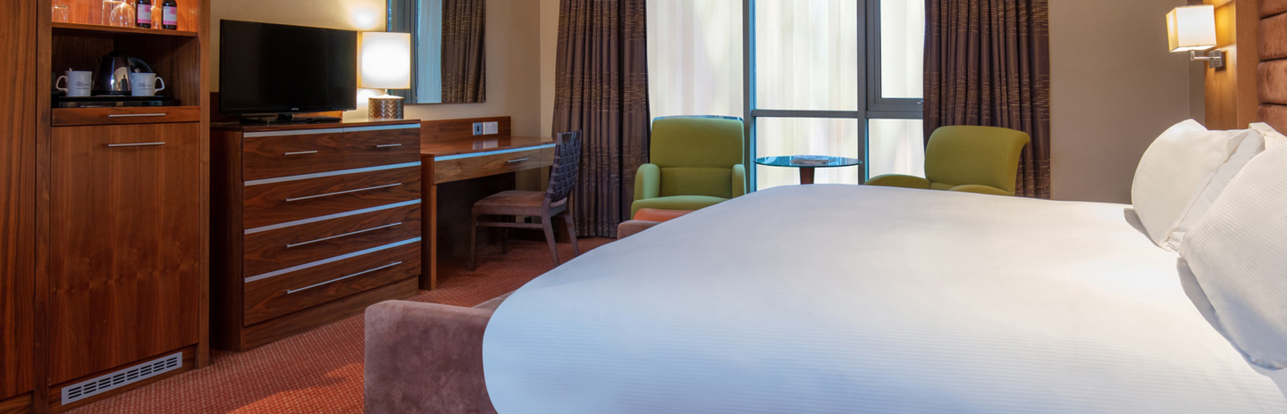 Upgrade your visit to Crewe Hall with a spacious Superior King Room – because when it comes to comfort, more is more. Located in the modern wing of the hotel, these beautifully designed rooms feature a plush king-sized bed and all the little touches that make you feel right at home. Each Superior King Room is fully air-conditioned, tastefully decorated, and includes an en-suite bathroom with both bath and shower – perfect for unwinding after a day of exploring or relaxing. You’ll also enjoy premium extras, such as a complimentary mini fridge stocked with drinks, a Nespresso machine, enhanced toiletries, and a cosy robe to help you slip into relaxation mode.